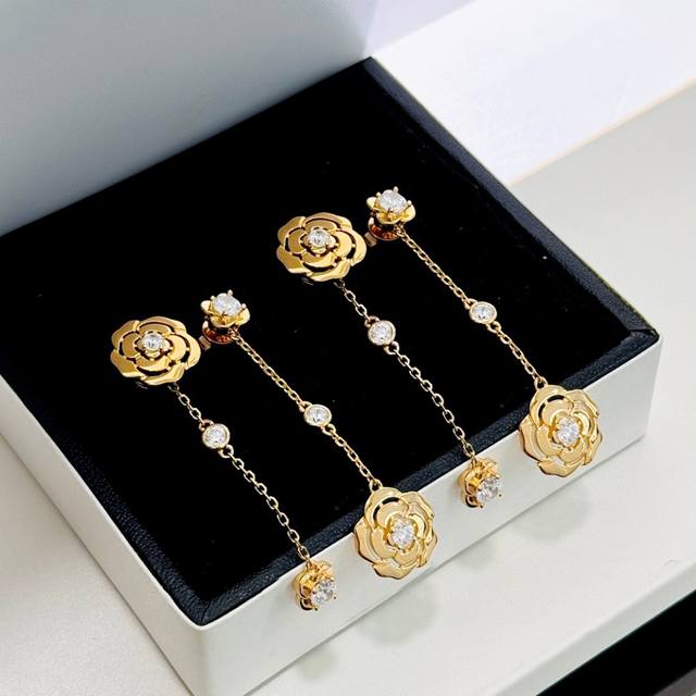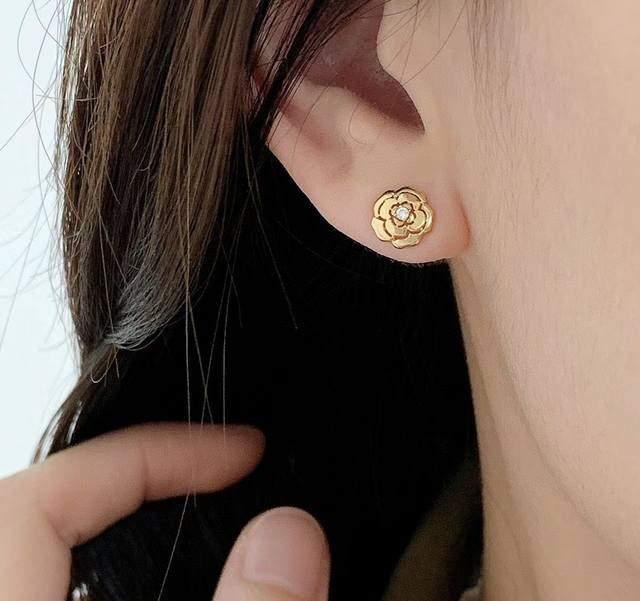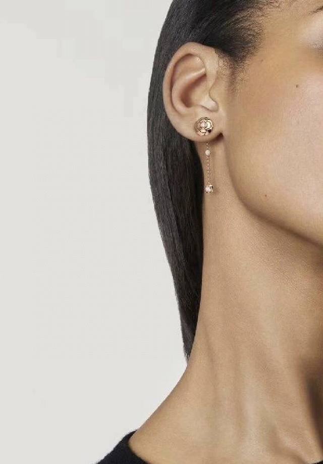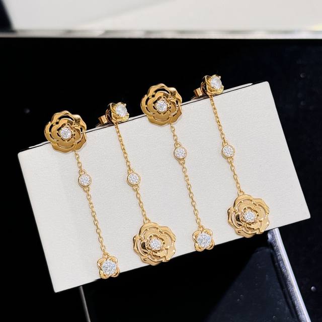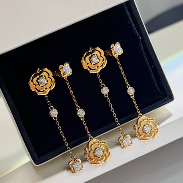 / V金高版 小香奈儿风 Camelia系列 镂空山茶花 不对称 耳钉 高端进口晶钻镶嵌 辨识度极高的标志性经典图案 实物质感超赞 气质搭配 立体花瓣造型非常精致