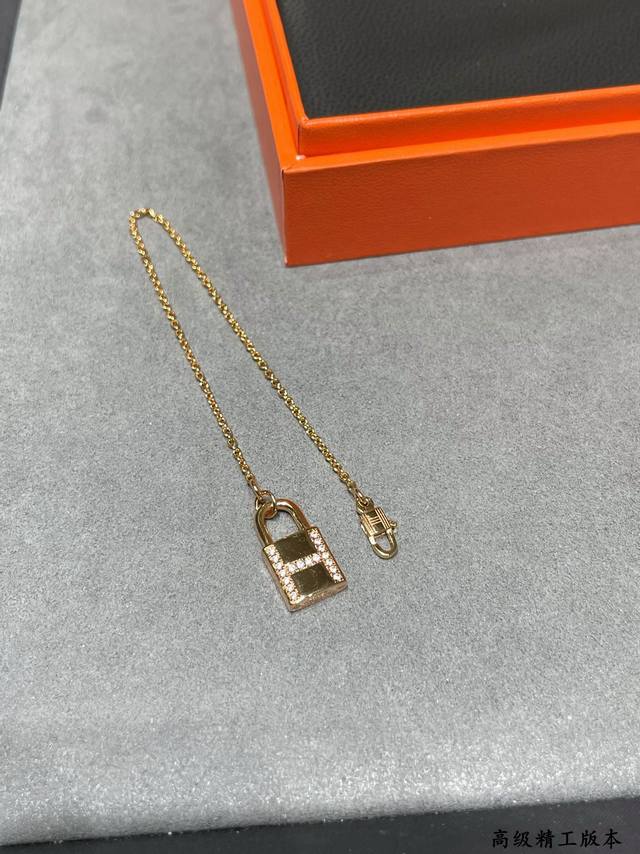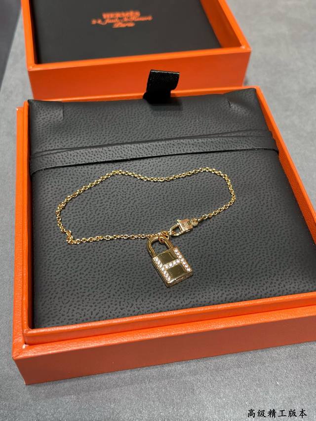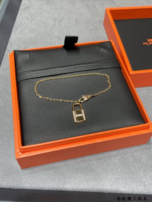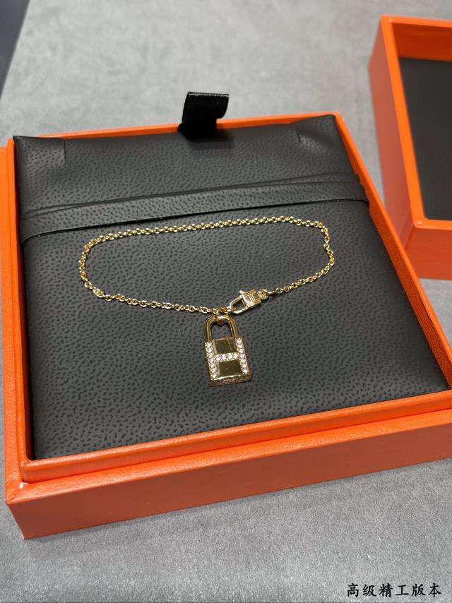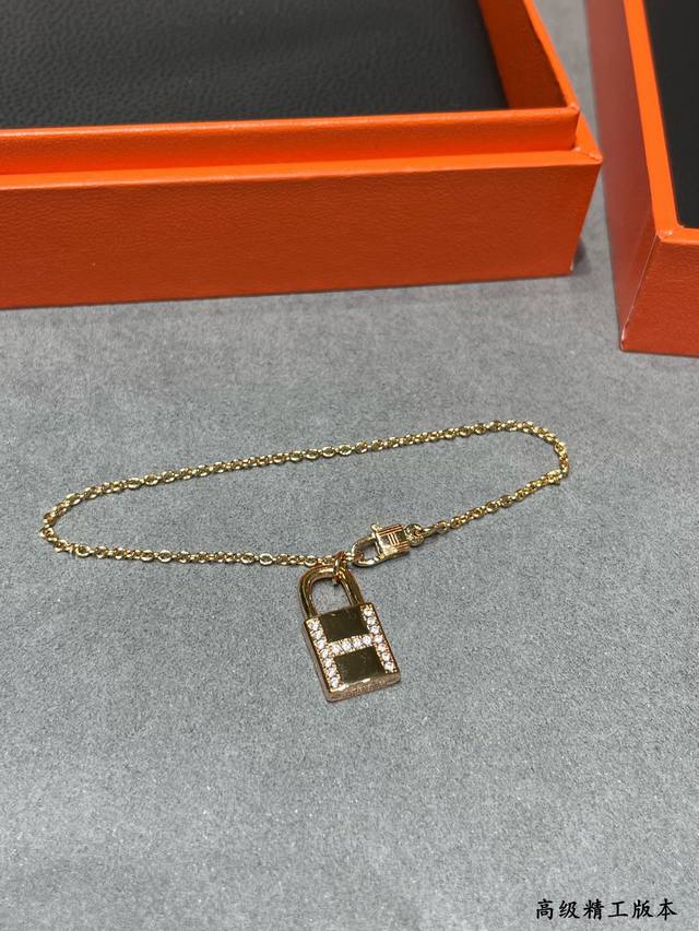 V金材质 2580164 加厚版,爱马仕锁头手链,进口高碳钻 太考验师傅的手艺了 要确保每颗钻都镶嵌好,高端定制 火爆 1:1超精赞 各路女神 明星 同款 K金