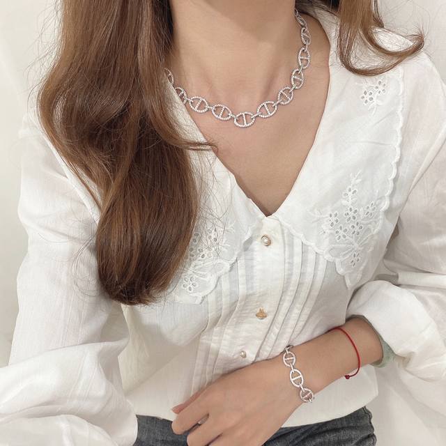 有Apm 猪鼻子链环银手链女Ins小众设计 年新款闺蜜手饰饰品。