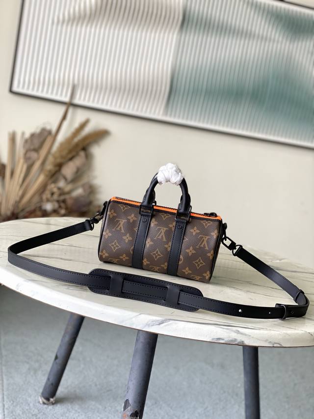 / 顶级原单 M80201 本款 Keepall Nano 男士手袋为品牌于 1930 年推出的初始柔软旅行袋的小巧版本,将 Monogram 帆布与黑色哑光皮革相