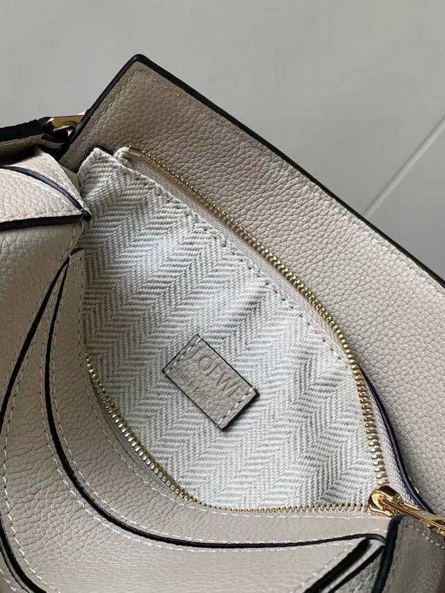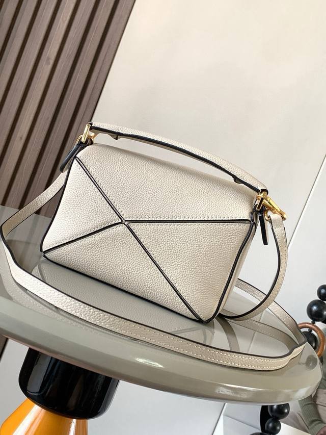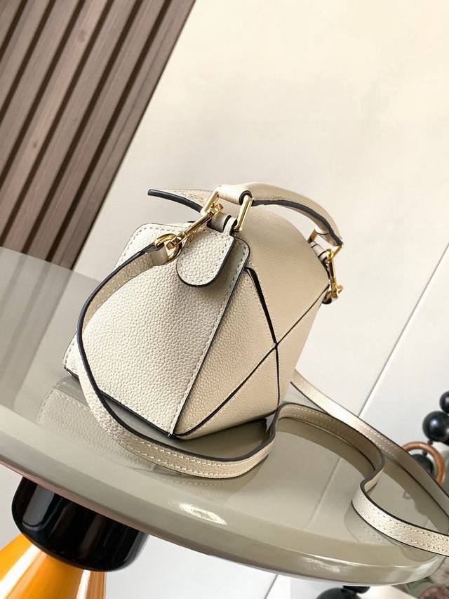 爆款几何包迷你18Cm原厂进口纳帕小牛皮Puzzle手袋是创意总监乔纳森.安德森为 L0Ewe 推出的首款手提包长方体形状和精确的切割技术创造了 Puzzle 独特的几何线条。这个迷你版本采用经典牛皮革制成迷你 Puzzle 可以容纳例如一只小号垂直钱包、大多数尺寸的手机 最大6.1英寸 和太阳镜盒斜挎、肩背、手拿或顶部提手携带.可拆卸肩带包包自身重量几乎忽略,炒鸡实用,出门装手机小钱包口红粉饼,毫无累赘感,轻松愉快人生从此开启 你们最关心的Xs,Plus都Ok哈