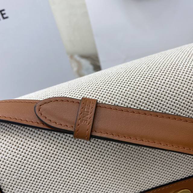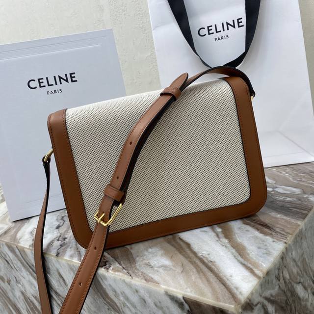 Celin. Triomphe中号帆布配小牛皮肩背包 9 X 6 X 3英寸 22 X 16.5 X 7厘米