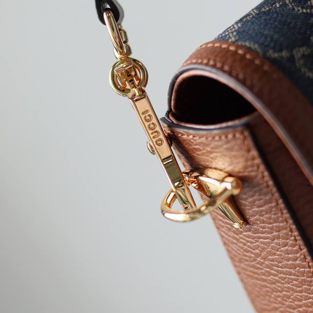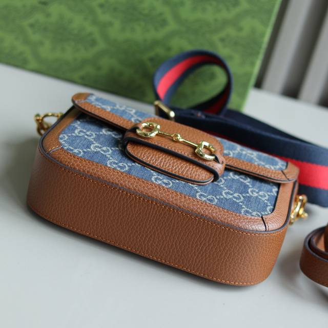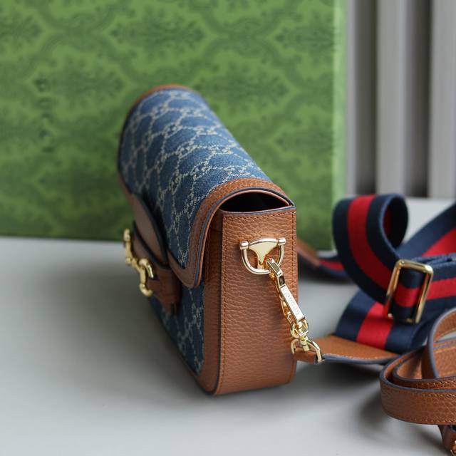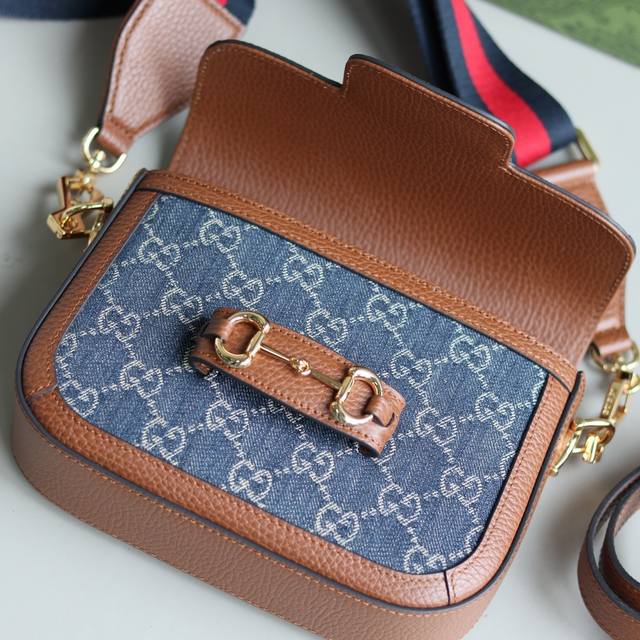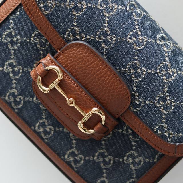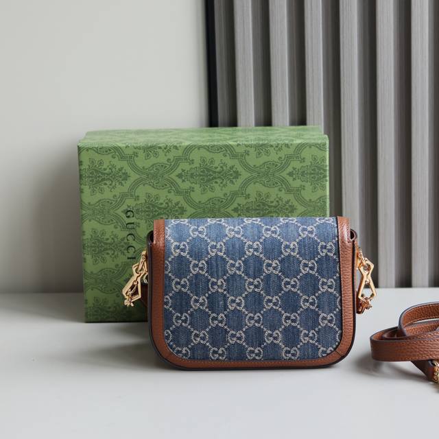 / Gg牛仔布配原厂皮.马衔扣1955系列迷你手袋为这一复古风格系列增添了混搭格调可拆卸肩带:1:尼龙织带肩带 48厘米高 2:皮革肩带 55.5厘米高 这款迷你手