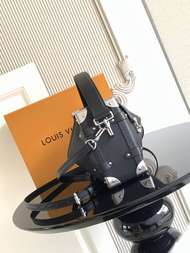 创意总监 è 以本款雅致 中号手袋致意品牌传统硬箱。粒面牛皮革包身点缀光滑牛皮革饰边、- 锁扣与金属质感加固包角。手柄与可调节肩带均可拆卸,方便手持、肩背或斜挎。