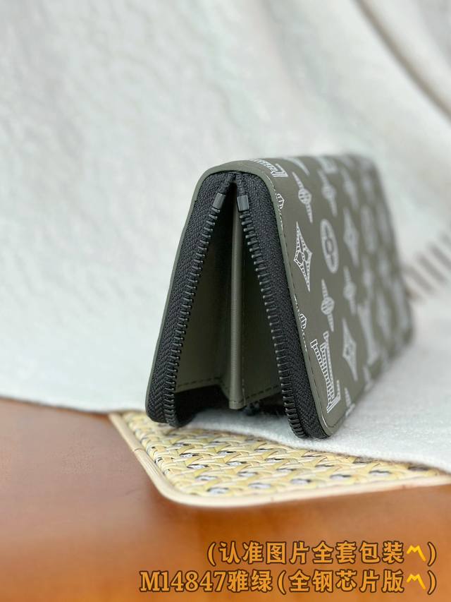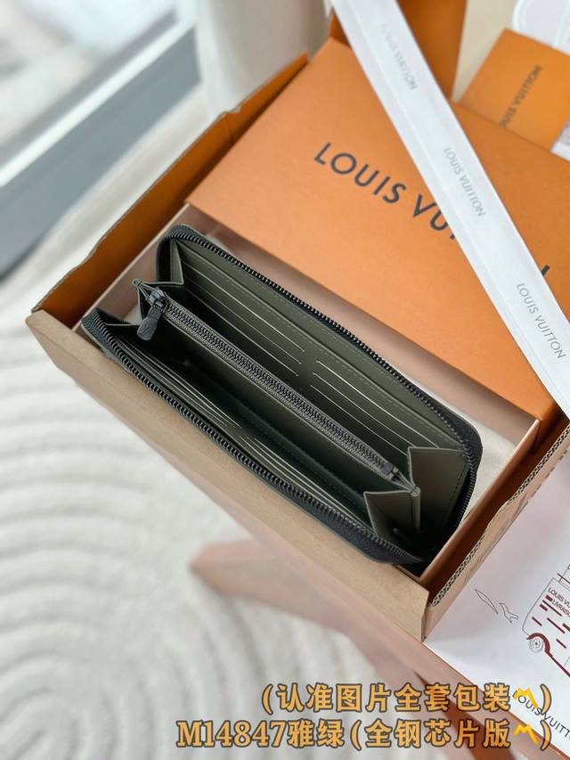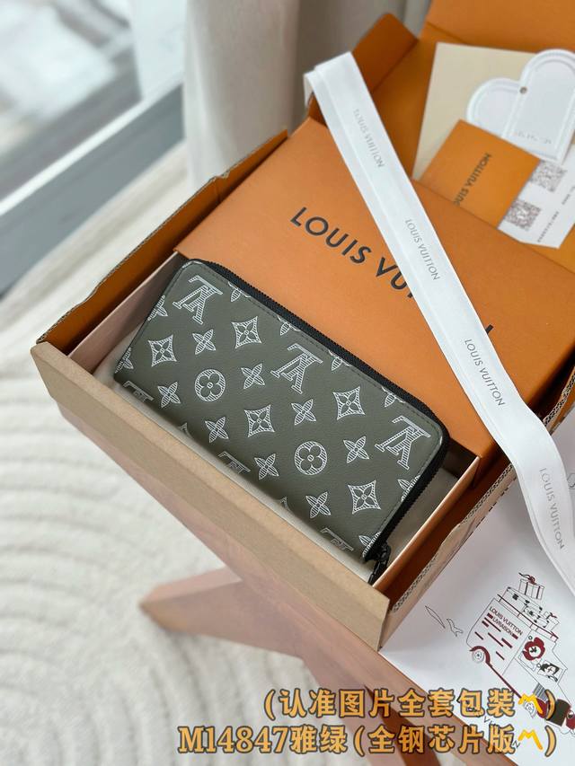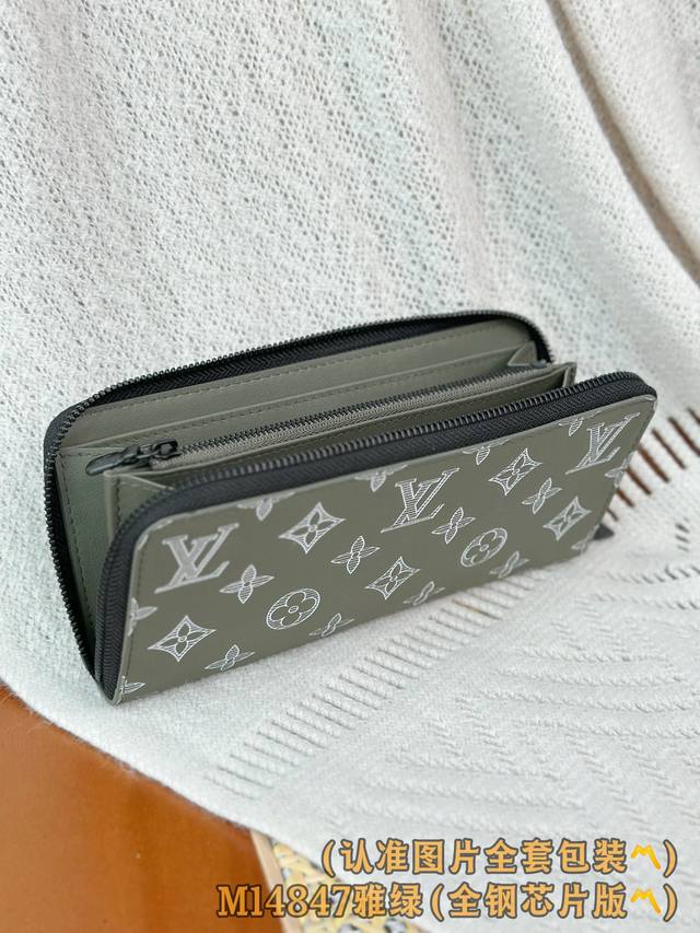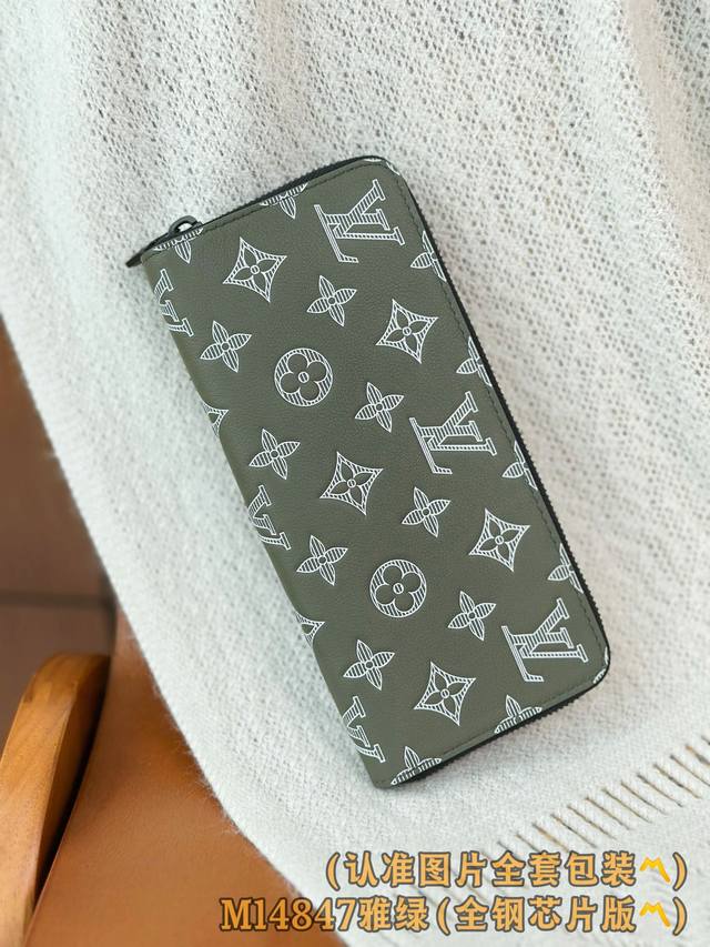 M14847 雅绿 A级全钢 个性化定制版!变码芯!橫式拉鏈錢包、這款橫式拉鏈錢包是一款採用全拉鏈設計的長款錢包,並以典雅的Monogram Shadow壓花小牛皮製作。柔軟的小牛皮令這款錢包更添柔軟獨特質感,而內部的風琴式隔層則包含12個名片夾層、一個可放零錢的中央拉鏈口袋以及兩個可放紙幣、票據或其他小紙張的額外隔層。