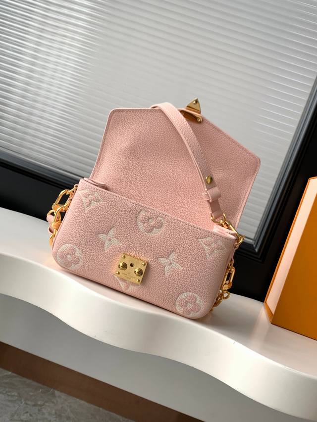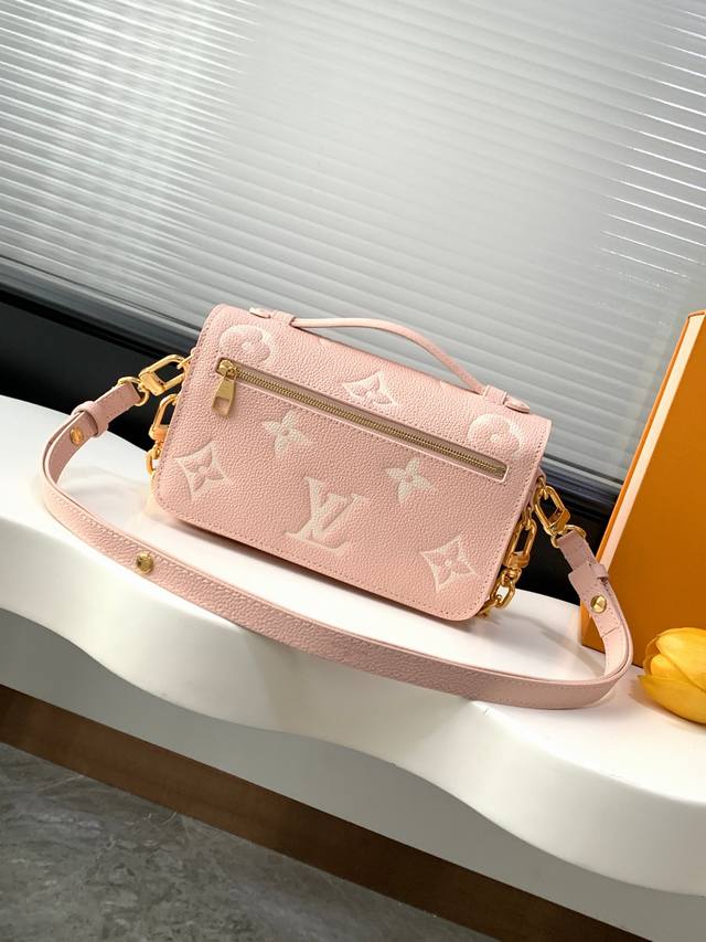 动态163C01芯片 顶级原单加强版 M14208粉印 本款 Pochette MéTis East West 手袋取材 Monogram Empreinte 压纹皮革,展现品牌风尚与摩登元素的融合。传统 S-Lock 锁扣和可拆卸短链条闪耀金属光泽,精巧构型囊括齐整内里,可调节肩带方便都市畅行。