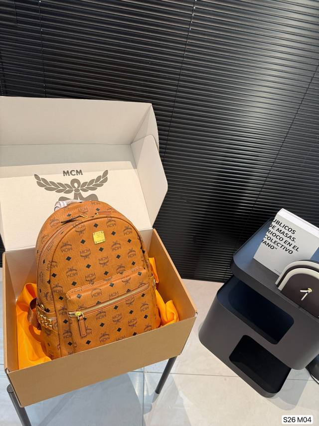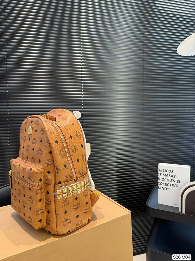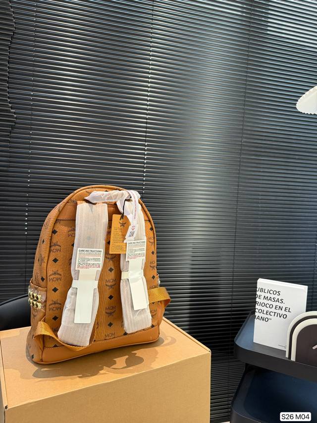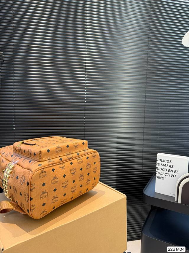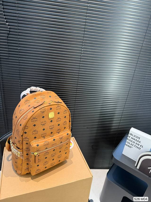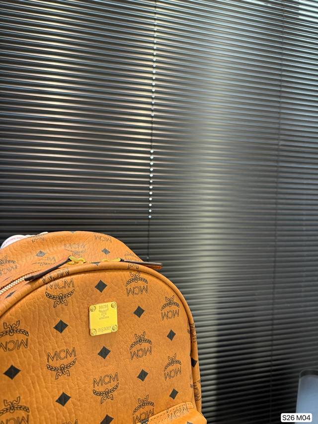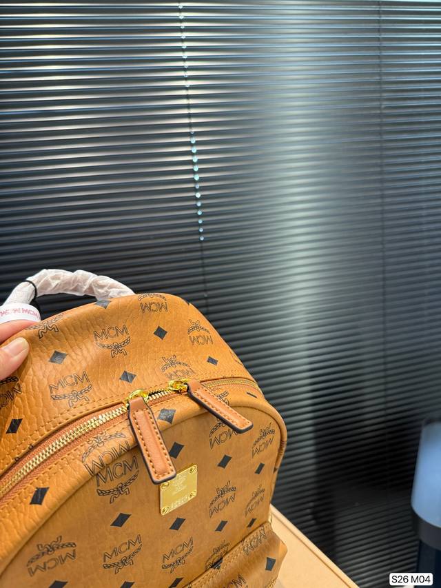 / 中号 配盒子 升级版Mcm双肩包 巧妙的丝印效果, 立体而自然, 以中轴为对称中心线的上线倒向对称,十分完整完美,尤其包型 超有弧度感的! 尺寸中号30 37