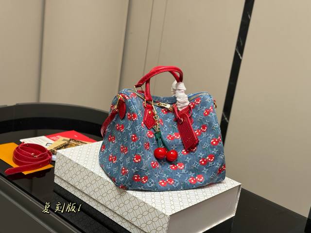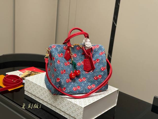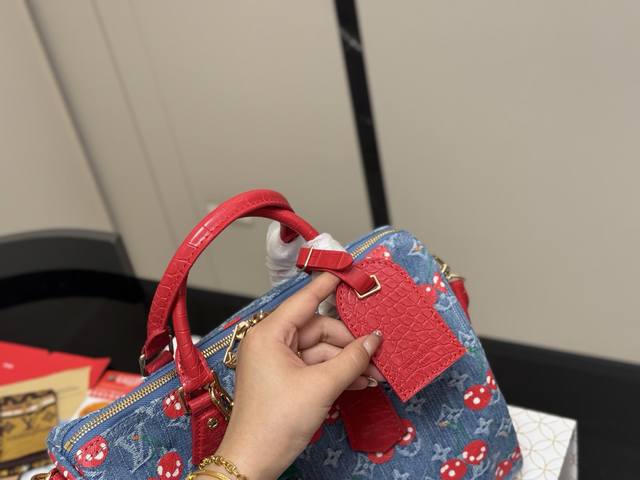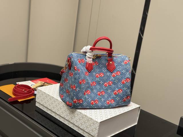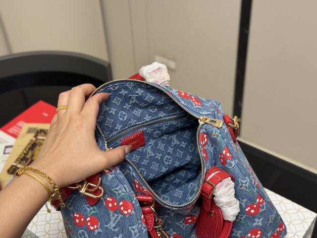 Lv X Takashi Murakami 村上隆 联名款 Seedy Soft 30 樱桃系列 丹宁牛仔布 枕头包单肩斜挎手提包