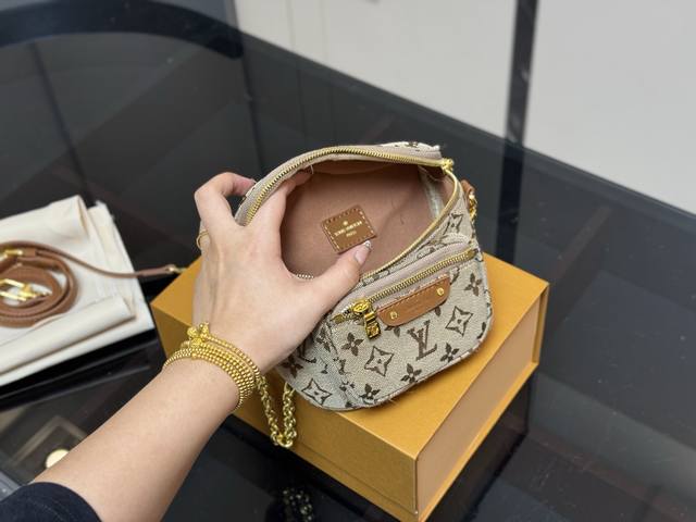 / 配折叠盒 Lv腰包重出江湖 好看到飞起的腰包 胸包 棉质帆布内衬 原单五金+原版皮料! 尺寸:18.14Cm 搜索Lv 腰包