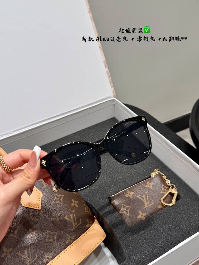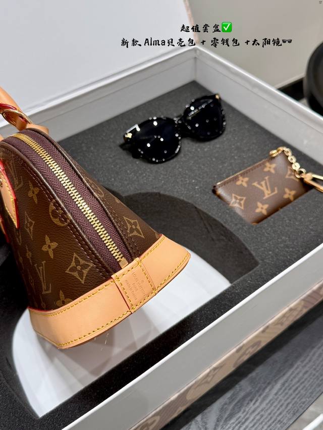/ 超值套盒 Lv Alma贝壳包挂件零钱包太阳镜墨镜礼盒 尺寸25*20Cm