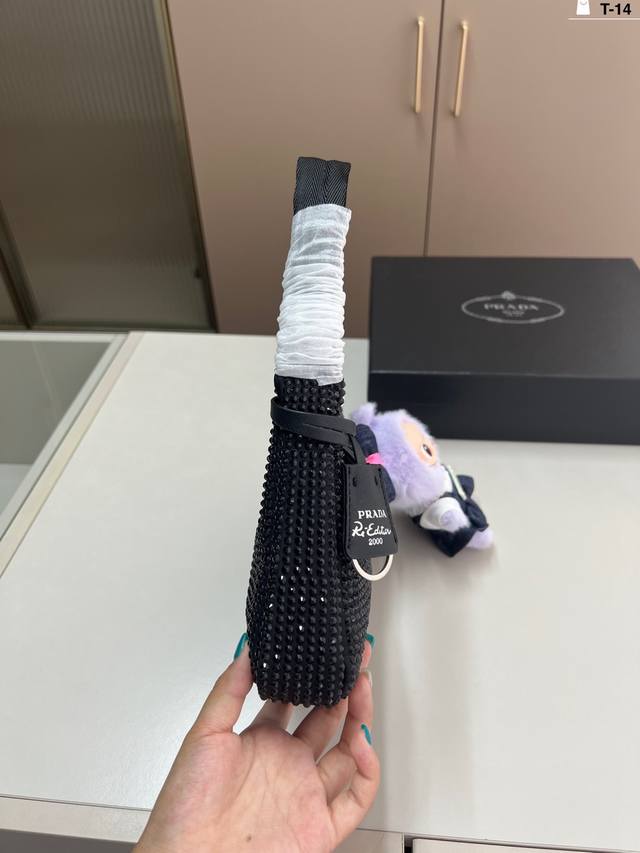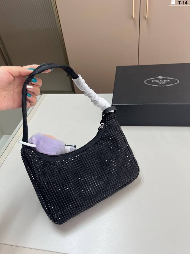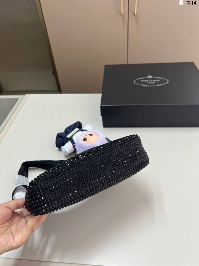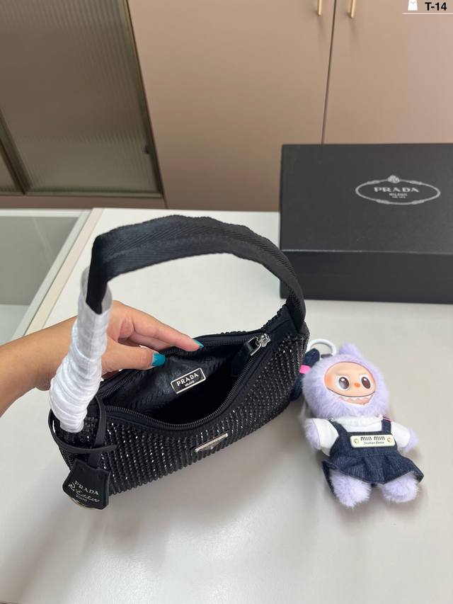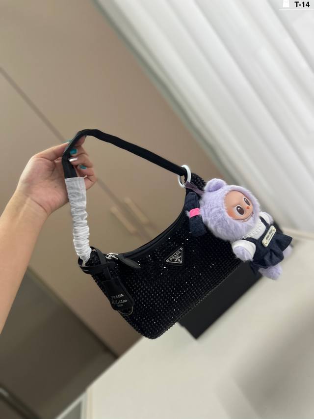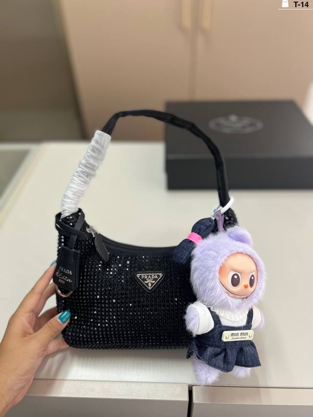配拉布布挂件 爆闪的普拉达腋下钻包 Prada这一季好多Blingbling,太好看了立马上头 感觉都好喜欢T-14尺寸20×12配盒