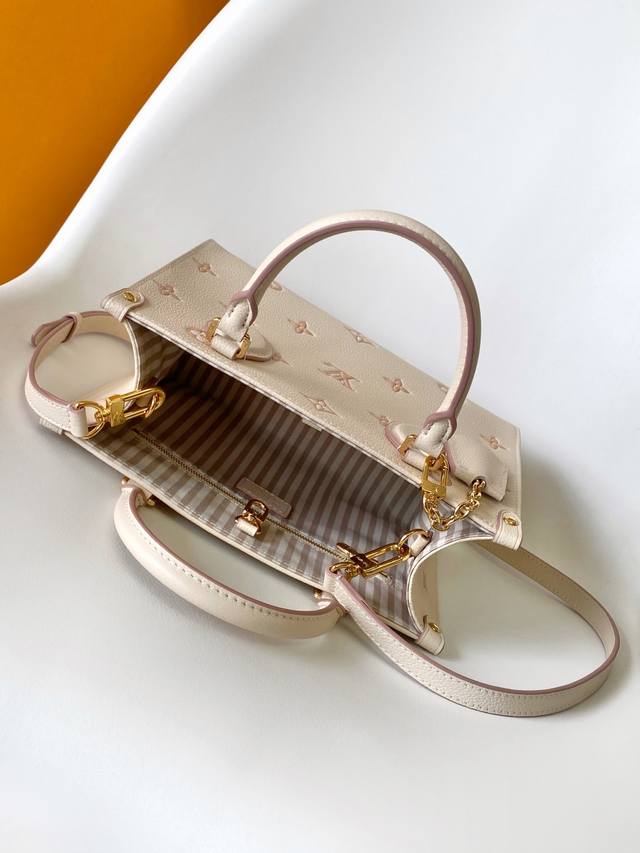 M14403 顶级原单 动态163 本款Onthego小号手袋焕新品牌经典Monogram Empreinte皮革,以相同色调勾勒图案轮廓。可拆卸金属链条装饰点亮细节,条纹织物内衬释放优雅气息,可拆卸肩带实现肩背或斜挎。尺寸:25 × 19 × 11.5 Cm