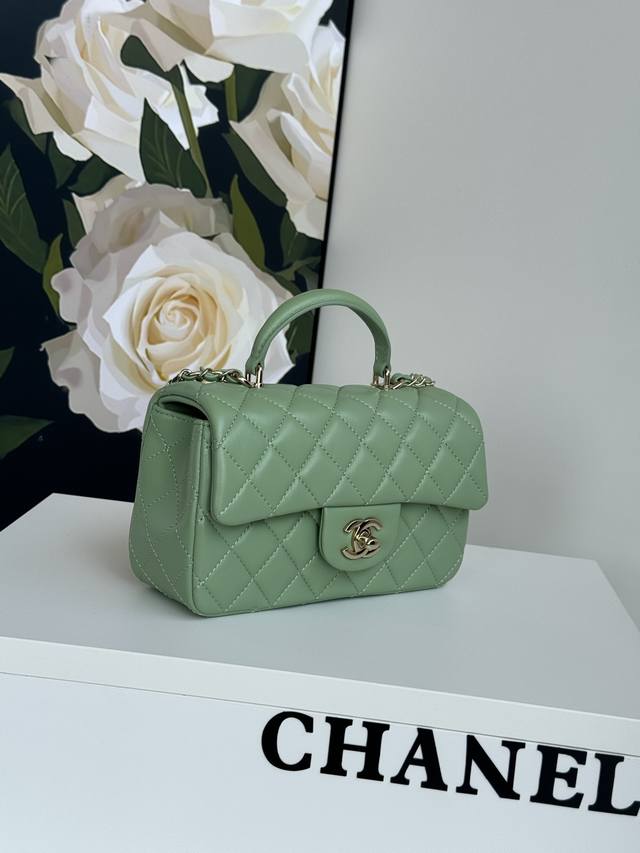 Chanel 25早春最新Mini Cf Handle 手提包 As2431 经典菱格口盖包 饰以精致经典链子搭配手提,细腻漆皮:润饰手袋,脱颖而出,演绎永恒优