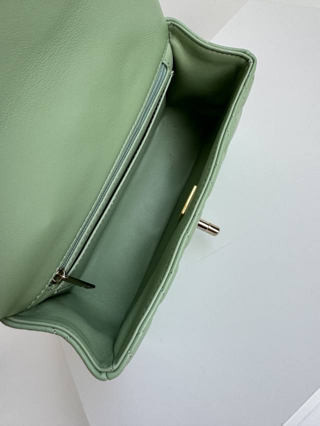 Chanel 25早春最新Mini Cf Handle 手提包 As2431 经典菱格口盖包 饰以精致经典链子搭配手提,细腻漆皮:润饰手袋,脱颖而出,演绎永恒优雅。尺寸:20X12X6Cm