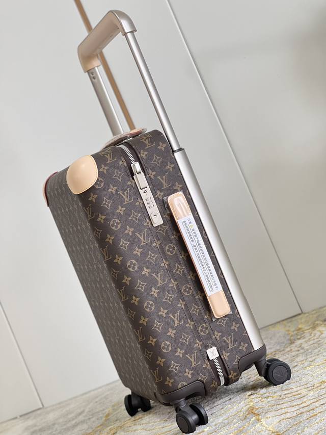 独家实拍 老花拉杆箱 全新 Horizon 拉杆箱以个性创意革新路易威登的传奇经典,为标志性 Monogram 帆布点缀旅行贴饰,追溯品牌传统行李箱的设计风尚。皮革边角保护和超大外置拉杆丰富智慧细节,打造优雅且实用的旅行伴侣。详细特征35.0 X 23×53Cm 长×宽×高 人工测量1-2Cm误差