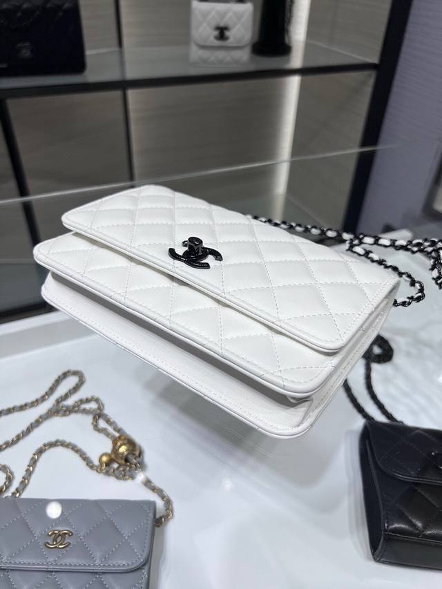 金属牌 旋转搭扣 内置一个拉链袋和六个卡槽。尺寸19Cm. A84456Y Ohanel 22B新款 熊猫色Woc链条包 小羊皮 翻盖开合