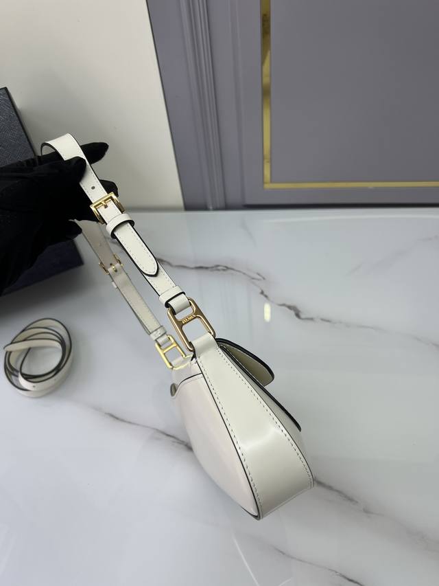 新款腋下包1Bd345 流畅的弧线设计为这款单肩包赋予精致而现代的魅力。风格百搭,配有2条长短肩带 又可调节,适合用作手提包或单肩包 斜跨。现代感十足的亮面皮革
