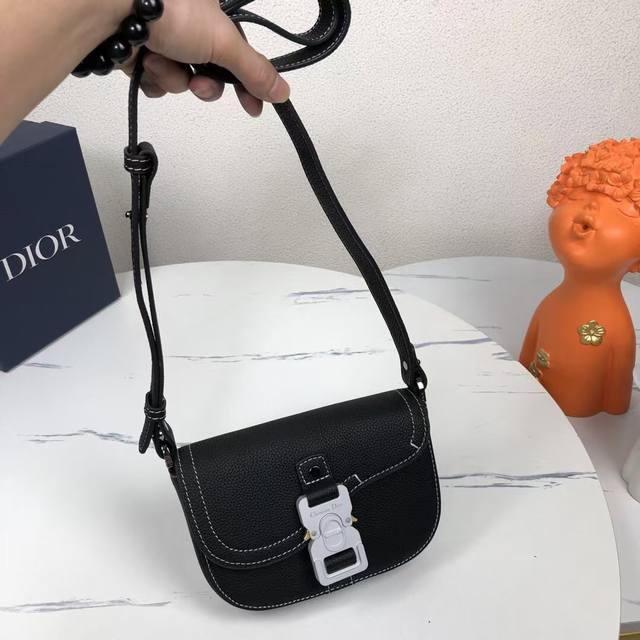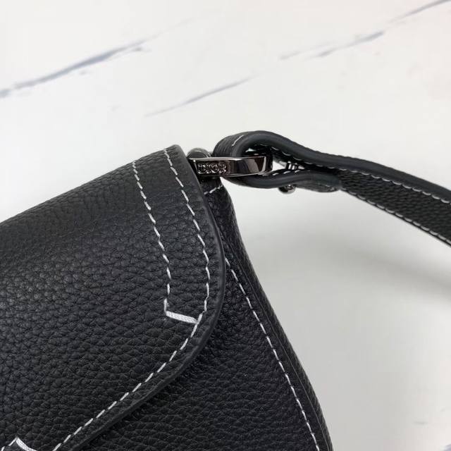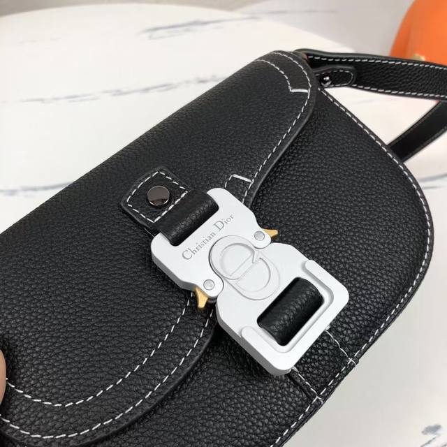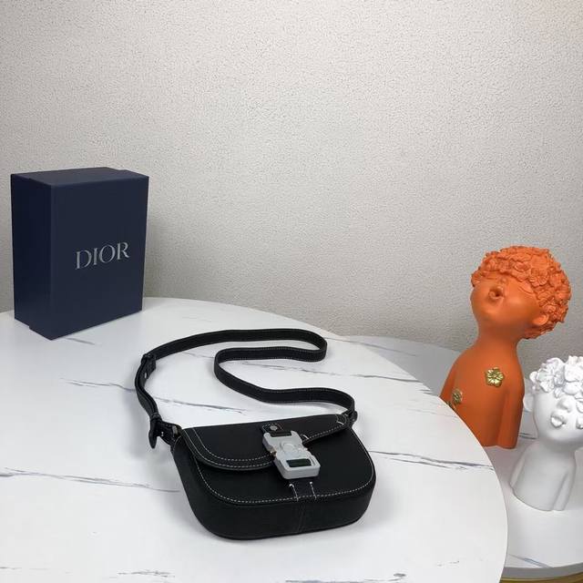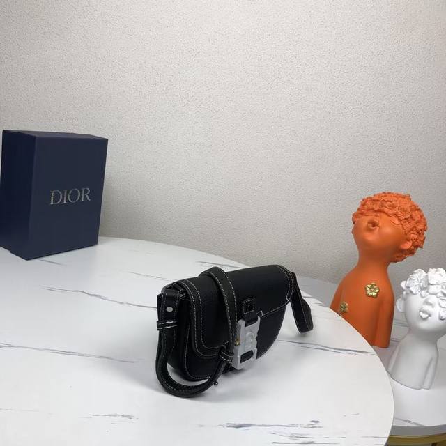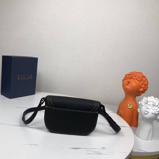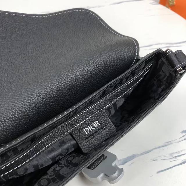 这款马鞍手拿包附有肩带,是二零二三春季男装系列推出的新款单品,采用时尚的设计,彰显精致的优雅气质,为经典的马鞍系列提升格调。采用黑色粒面牛皮革精心制作,饰以对比鲜明的缉面线,马鞍翻盖点缀以 Christian Dior 标志铝扣。搭配可拆卸、可调节的皮革肩带,可手提、肩背或斜挎。