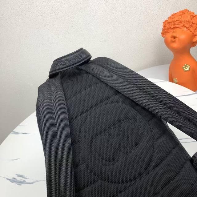 黑色尼龙可调节加垫肩带,搭配黑色牛皮革细节