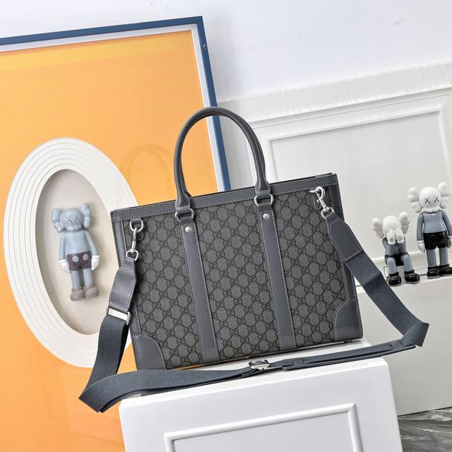 古奇原单公文包,724665#原单高品质,G家持续更新配色,添加更精致的色调。新配色和色彩组合为品牌标志性单品注入新意,彰显现代格调。这款G家系列背包采用Gg帆布的灰色和灰色头层皮组合,彰显了G家为品牌标志性设计元素注入现代魅力的设计实力。尺寸39X28X10