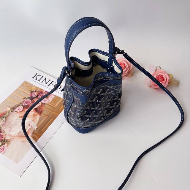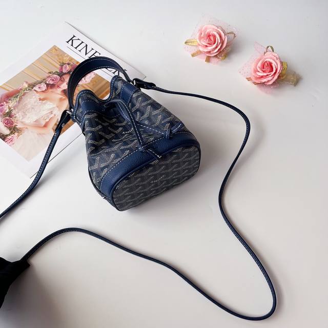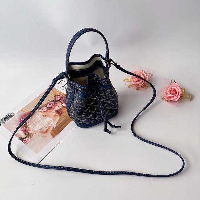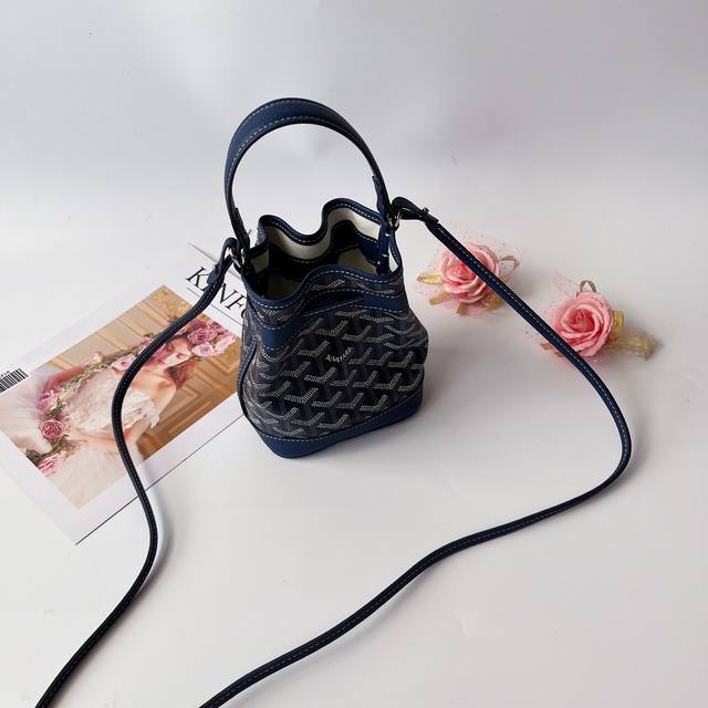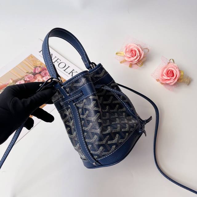 戈家迷你水桶包,这款水桶包名为 petit Flot ,意指 Goyard 家族世代相传的木材运输行业。它来源于 Goyard 于20世纪60年代推出的一款提花