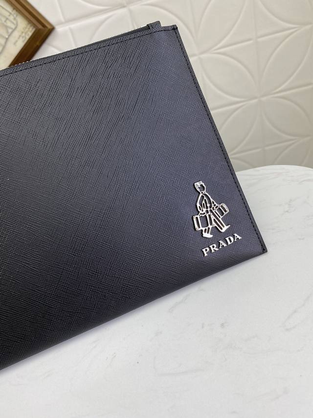 prada经典热卖男士手包专柜最新款式,官网同步,正品开发,型号2Ng005中号机器人 十字纹牛皮质感极好,Lampo拉链 抛光钢质五金配件!进口环保油边,走线做工精湛完美 尺寸:长28Cm*高18Cm