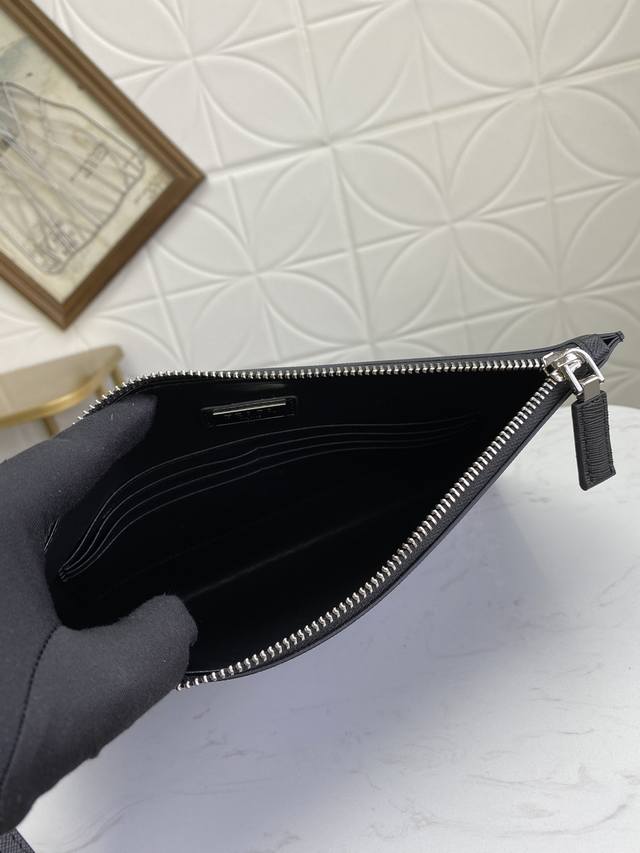 prada经典热卖男士手包专柜最新款式,官网同步,正品开发,型号2Ng005中号机器人 十字纹牛皮质感极好,Lampo拉链 抛光钢质五金配件!进口环保油边,走线