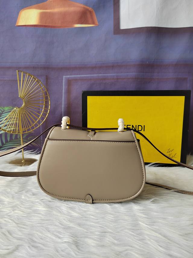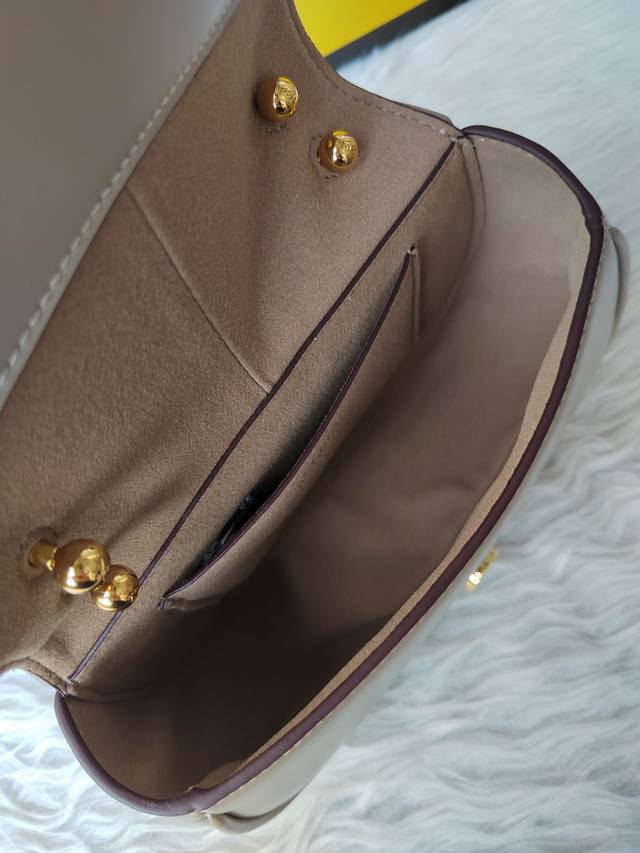 / 款号8Bs082杏色小号斜挎手袋,采用女性化孤行线条设计,配有长版翻盖,金属Ff标志,可拆卸肩带,尺寸21Cm-15Cm-6.5Cm