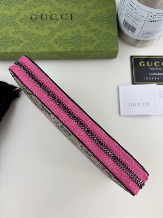 / Guccl 这款全拉链钱包以经典Gg字母交织图案涂层织物匠心打造,巧妙融入Gucci印花和撞色皮革滚边,令整个设计愈发丰满。12个卡片隔层、3个开口钞票袋和一个