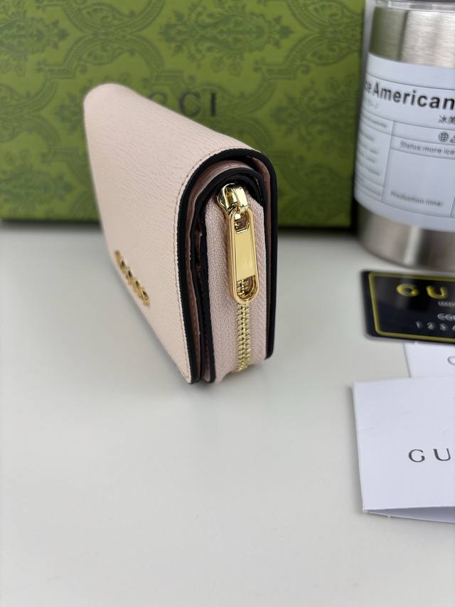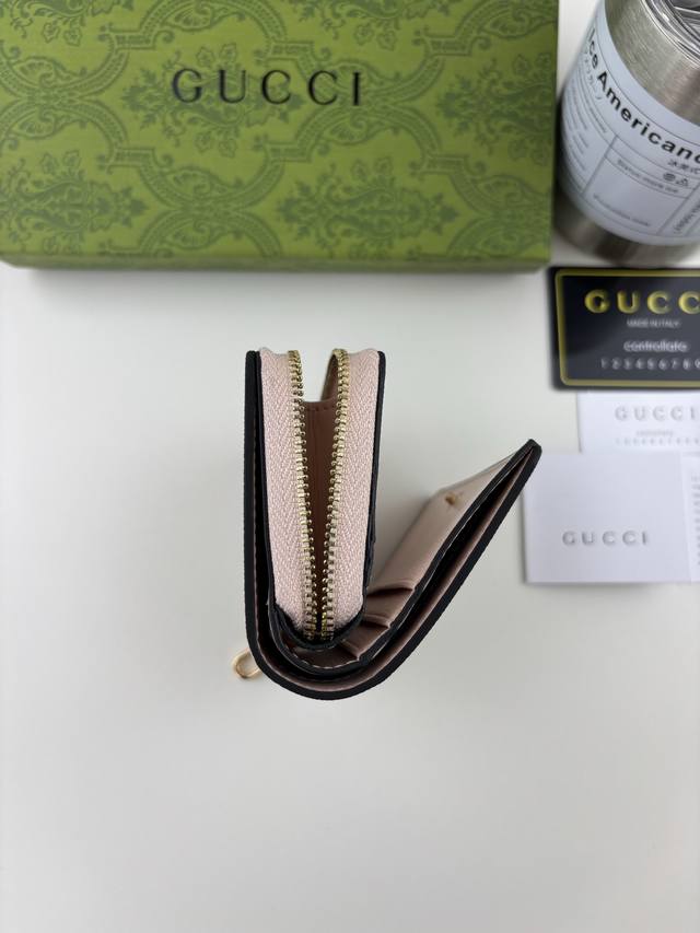 Guccl 饰手写体Gucci标识链带钱包。小号皮革配饰系列无缝融合现代时尚元素,塑就风格更迭但不失经典意蕴的匠心单品,为正装皮革单品汇入新鲜活力。这款链带钱包以粉色皮革匠心打造,巧妙融入金色调手写体Gucci标识细节。粉色皮革,金色调配件,塔夫绸衬里,手写体Gucci标识细节,内部:六个卡片隔层、一个接裆式拉链袋和一个开口隔层,链式包带,按扣开合。