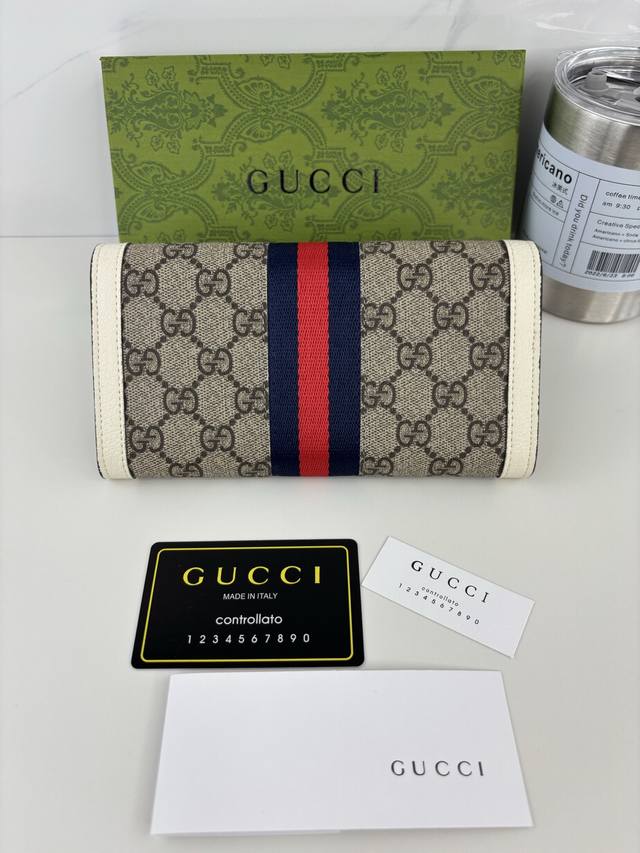 / Guccl 官网同步新款!Ophidia系列~两折长夹,采用Gg Supreme高级pvc面料 配以标志性双G 五金唛头,经典著作蓝红色织带,精制而成! 款号: