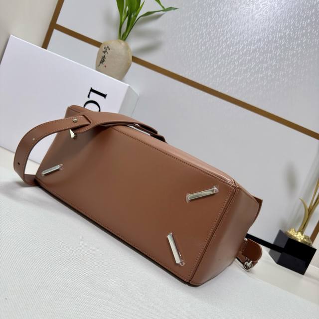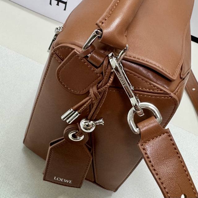 可拆卸可调节肩带,饰有旋转卡扣*拉链开合,铰接式拉链头 一个外部拉链后袋,两个内部插袋*可拆卸 Loe**We 烫金或烫银标签,饰有隐秘口袋和气球骰子*长方形金属脚钉 纳帕羊皮革衬里 Anagram 压纹、饰牌内部镌刻 Loe**We.