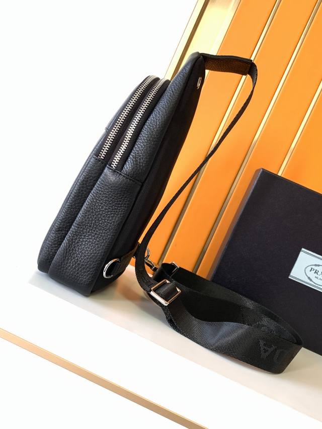 #顶级原单货万宝龙新款胸口包,光泽好上档次,高纤维布裡,专柜五金配件,质量超赞。尺寸:17X31X6