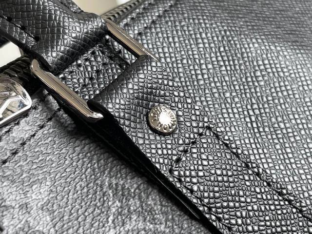 独家实拍 M30925 本款 Voyage 小号公文包选取 Taga Noir 牛皮革,在抚平、抛光等工序后压印细腻纹理。衬垫内里可收纳 13...