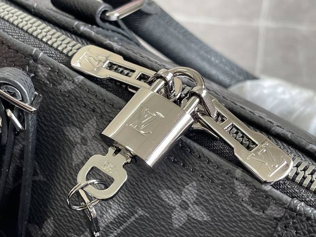 原单M61692压花 Pochette Voyage 手袋 由全新标志性黑灰Monogram Eclipse帆布裁制而成,此款风格硬朗的全新Pochette V