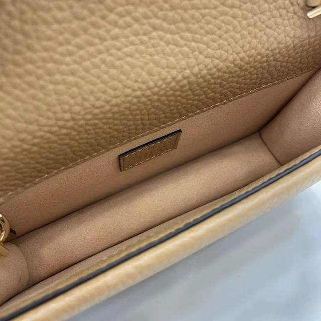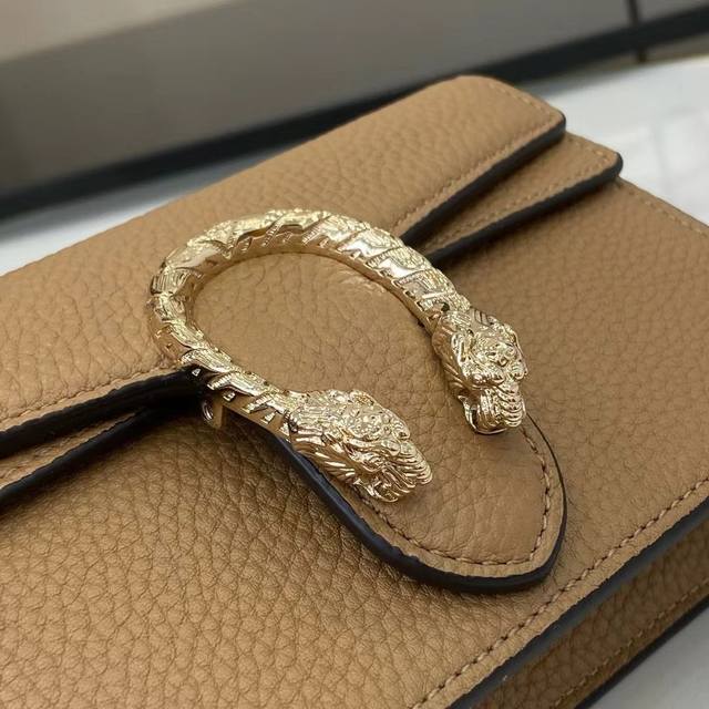 顶配版 新品 这款Dionysus系列迷你肩背包选用米色粒面皮革匠心打造,采用侧开口双虎头锁扣,点缀珐琅和水晶细节。配有固定链式肩带,成就昼夜皆宜的精致包款。