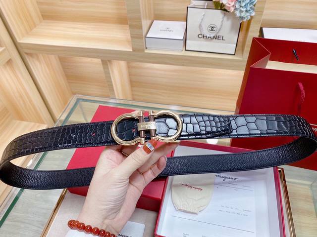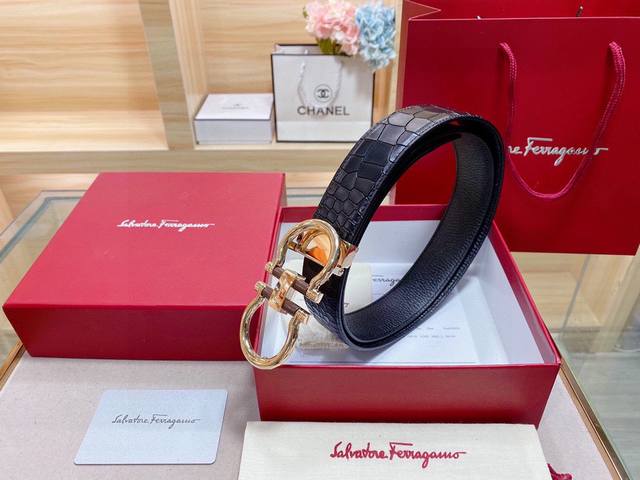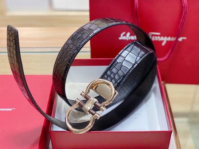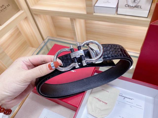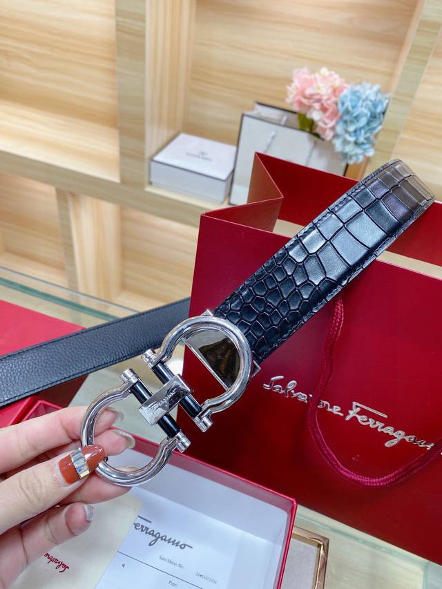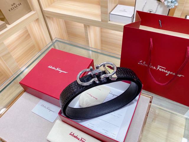 菲拉格慕 原单双面进口小牛皮带身.搭配原单精品钢扣。原产皮料定制,专柜宽度3.5Cm. 温馨提示:长度 - Cm...