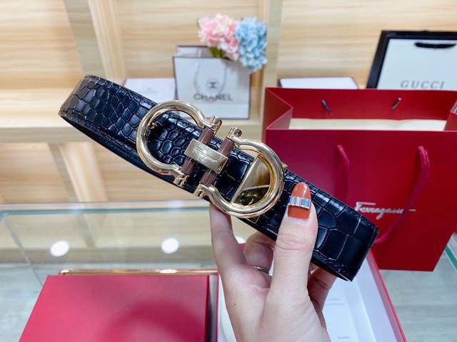 / 菲拉格慕 通用款 宽度:3.4Cm新款纯牛皮 搭配新款大气精致扣头追求高端 品味的体现Iphone实物实拍上身效果超好
