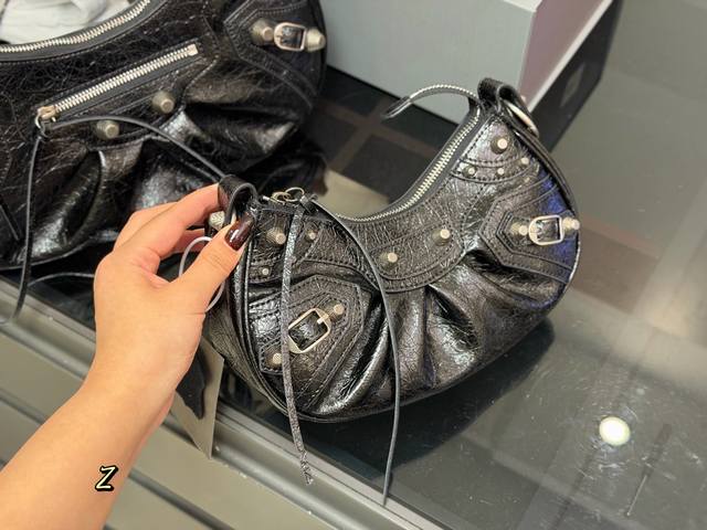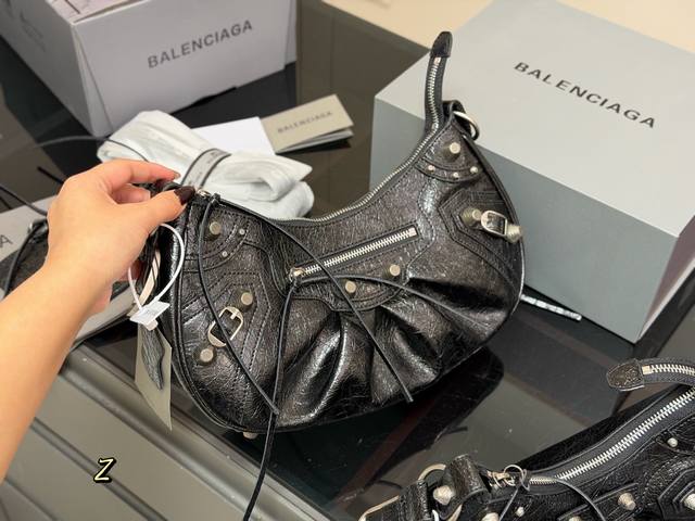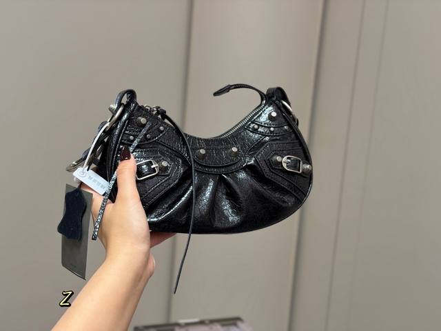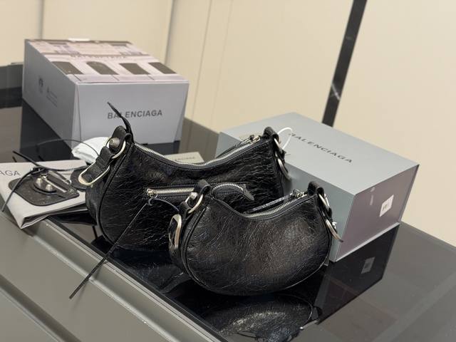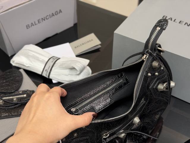 钻 配盒 Size:25*12Cm 小号 巴黎世家Le Cagole 半月牙腋下包饺子包 致敬经典机车包系列重磅新款王炸登场La...