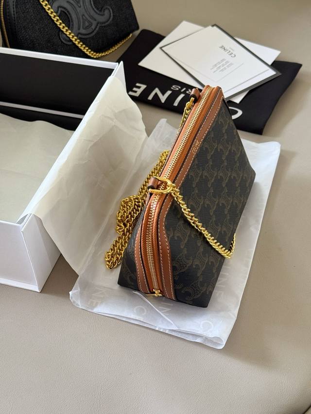 特级品质 全钢五金 Celine 23S秋冬新品|College Triomphe亮泽牛皮革链条手袋 凯旋门秋季新款 最新的College Triomphe里完