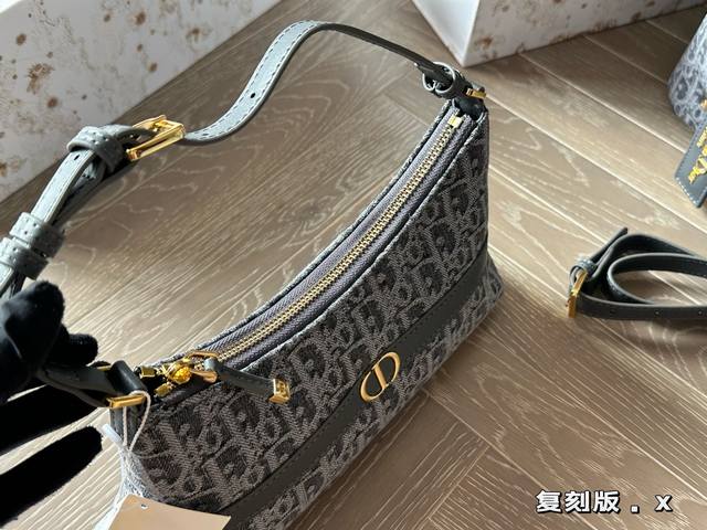 正品级 ,高版本中号 D-Journey 手袋 灰D配皮 这款 D-Journey 手袋质地柔软,以摩登设计全新演绎水饺包廓形。采用灰色 Oblique 印花面