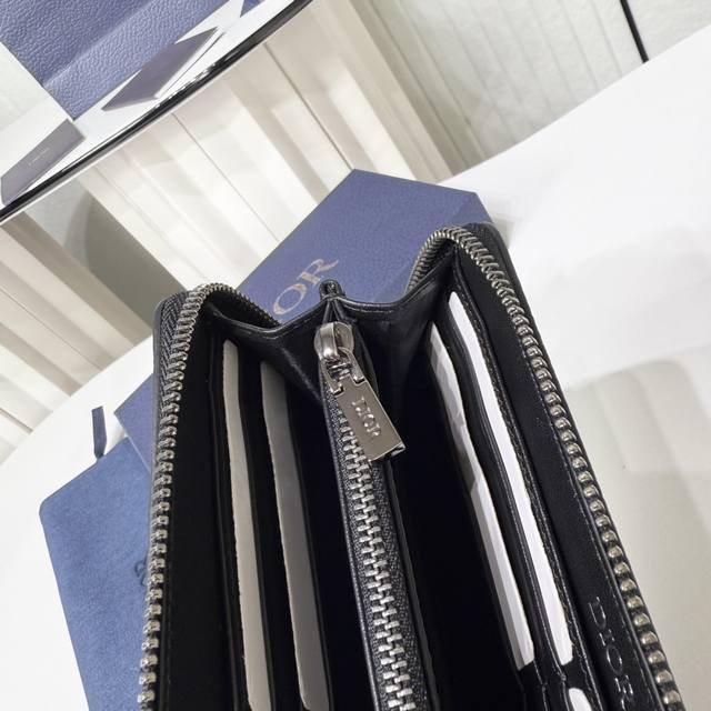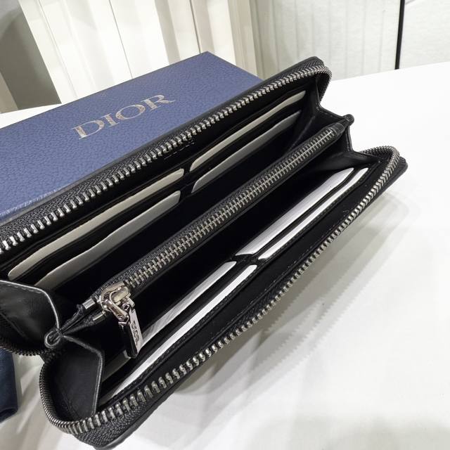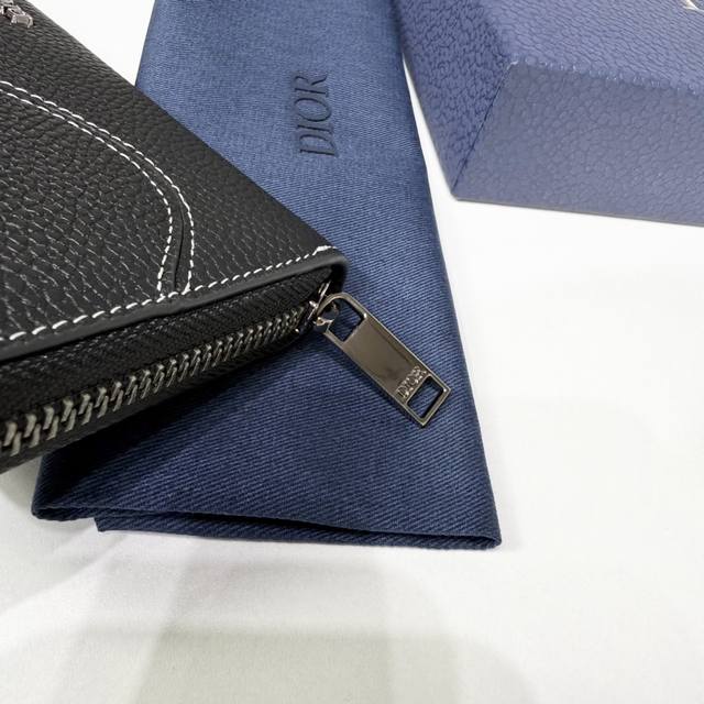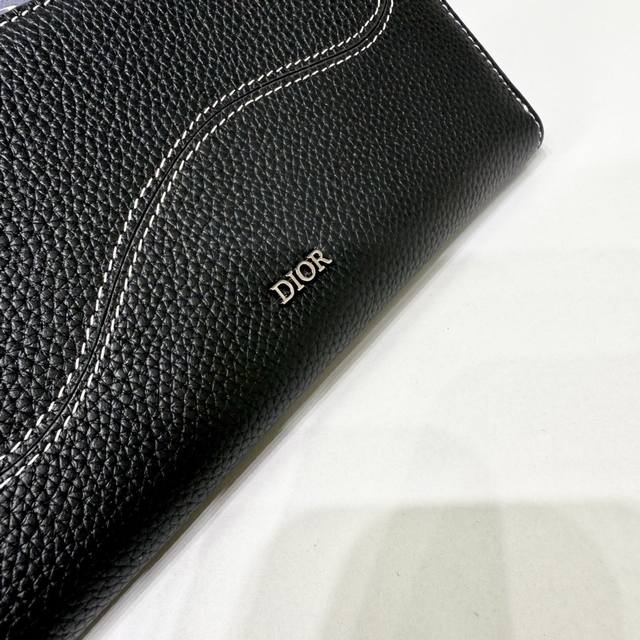 这款马鞍长款拉链式钱包低调而不失优雅气质。采用黑色细工镶嵌粒面牛皮革精心制作,饰以对比鲜明的缉面线,重新诠释经典的马鞍造型,正面饰以 Dior 标志提升格调。中间的拉链隔层可放置硬币,双层现金隔层和 12 个卡槽提供充足的收纳空间。优雅宽敞,是日常的理想良伴。