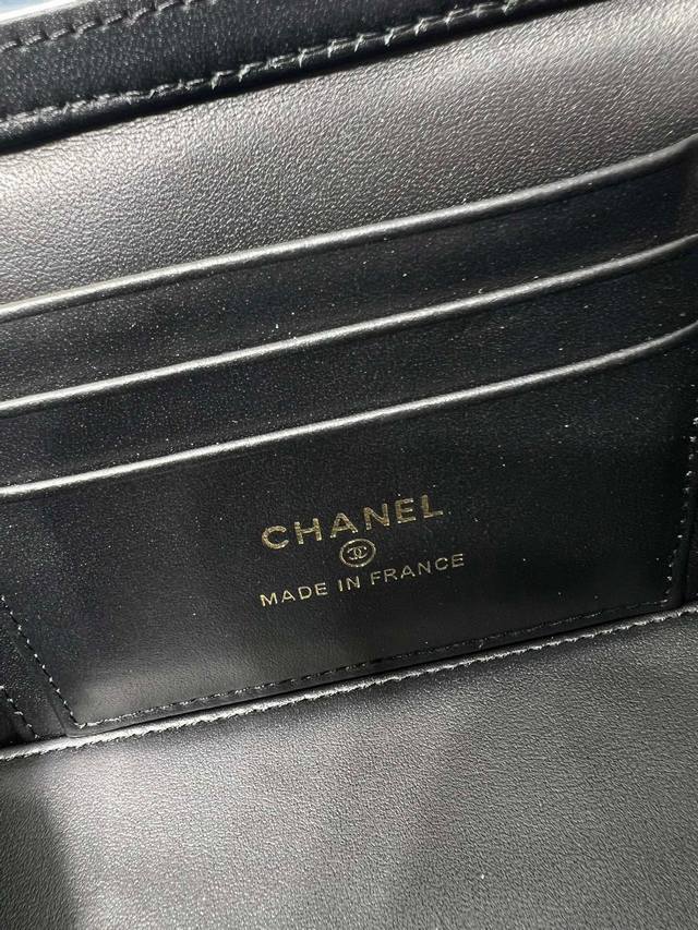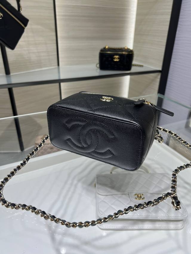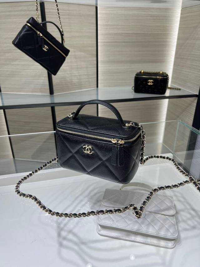 Ohanel 25K新款 大棱格 链条手柄长盒 化妆包 黑色 牛皮 单肩斜挎手提包