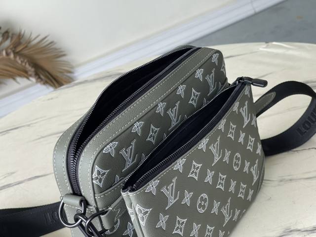 头层皮 顶级原单 M12490 本款 Trio 邮差包取材 Monogram 压纹牛皮革,拉链前袋和肩带处的小号零钱包均可拆卸,与主隔层共同丰富功能设计。可拆卸