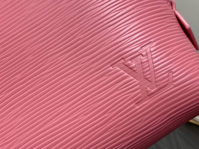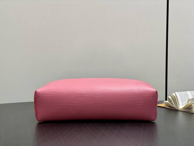 原单精品 M15198粉色 水波纹化妆包 当季新款 pochette CosméTique 中号化妆包 本款 pochette CosméTique 小号化妆包为 Epi 粒面皮革融入路易威登美妆系列的唇膏色彩,与可水洗织物内衬共筑和谐同频的视觉效果。Lv 字母拉链头缓缓流露优雅格调,内贴袋再添功能考量。17 X 6 X 24 厘米。