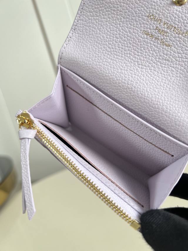 出厂价p 顶级原单 M25807紫 這款Rosalie零錢包以柔軟Monogram Empreinte粒面皮革製造,綴有標誌性的Monogram壓花圖案。這款小巧柔美的零錢包設有圓角翻蓋,並配以金色的Louis Vuitton標誌刻紋按扣,此外亦設有拉鏈零錢格,一個貼袋及兩個信用卡夾層。11 X 8 X 2.5厘米 長度 X 高度 X 闊度