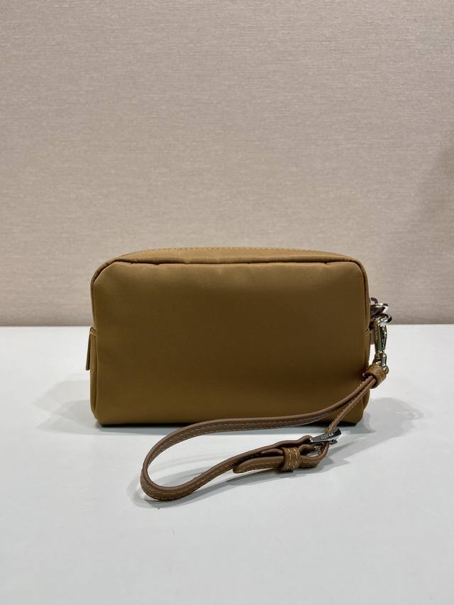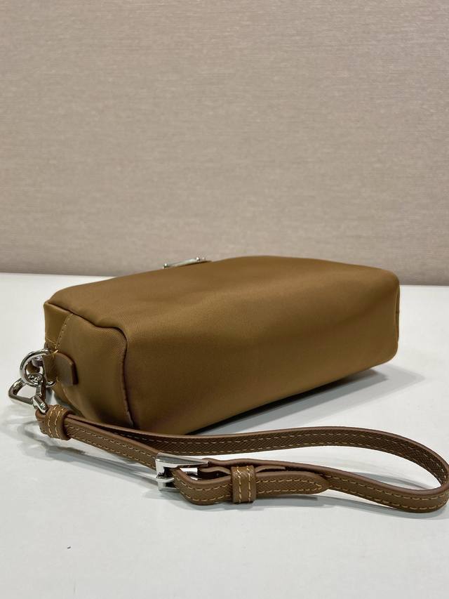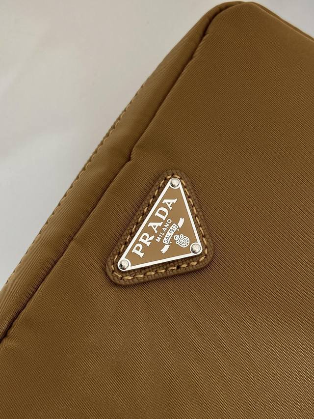 这款手拿包取材进口创新性Re-Nylon再生尼龙面料打造。标志性的涂珐琅金属三角形徽标装点简约线条。开启包身可见拉链式内侧口袋。 可拆卸皮革腕带,容量空间大,日常出门必备品全没问题你们心心念的大号手包到货了,宝宝们,赶紧入手吧