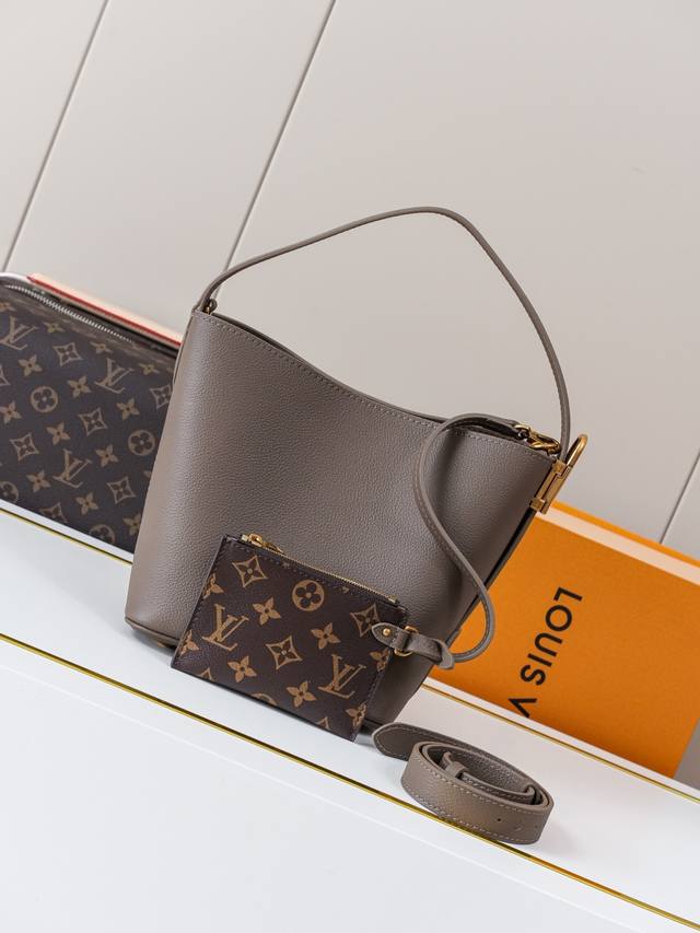 动态163C01芯片 M25544灰咖 顶级原单 独家背景实拍 本款 All In Bb 手袋出自 Low Key 系列,采用粒面牛皮革塑造紧凑水桶包构型,以多种背携方式游刃昼夜场合。做旧金属件传递复古意味,Lv 挂锁和可拆卸 Monogram 口袋彰显品牌格调。