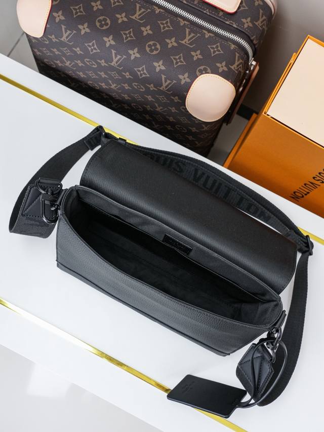 动态163C01芯片 M57080黑 顶级原单 独家背景实拍 Lv Aerogram 邮差包以极简设计满溢潮流气息:细腻牛皮革表面的可定制标签仿佛旧式航空信笺上的邮票,直角翻盖开启内部空间,可容纳手机、平板电脑和文件,拉链后袋稳妥收纳贵重物品。