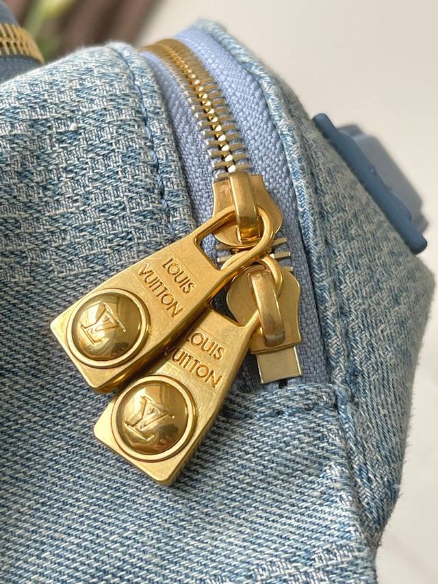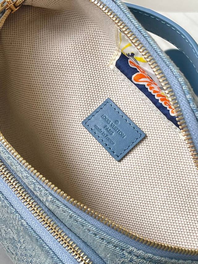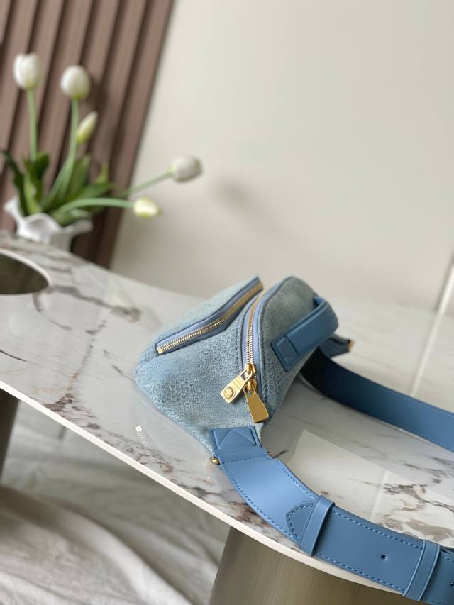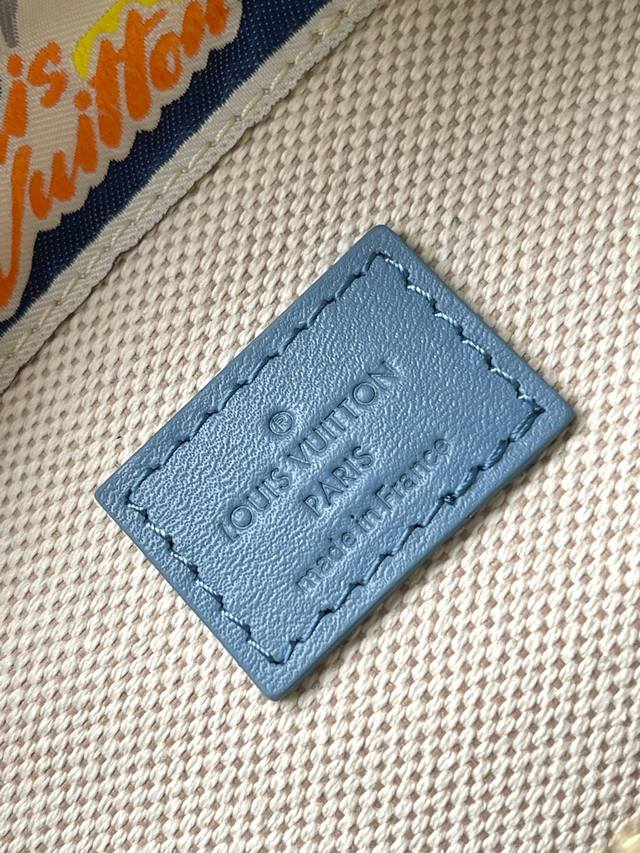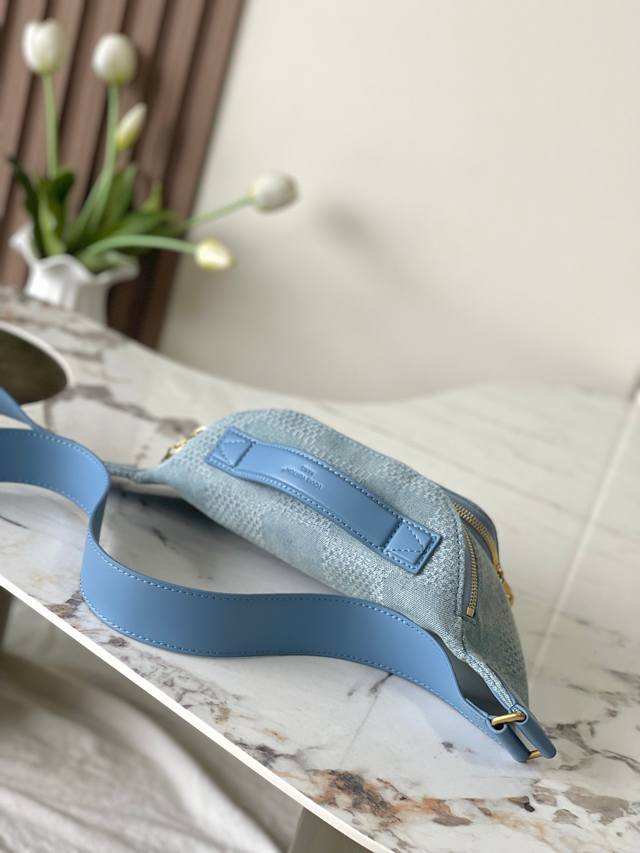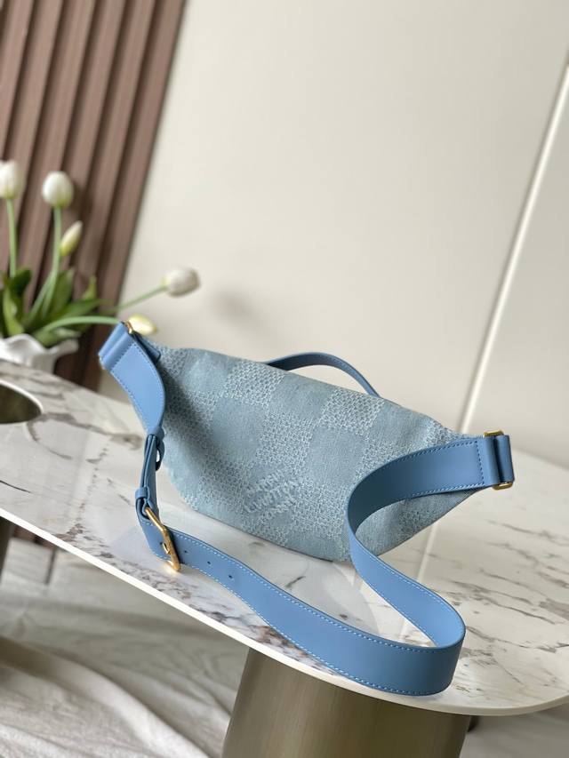 43644花 Rush 腰包结合 Damier Denim 3D 棉质帆布与锃亮金属件,以大号格纹讲述品牌 Damier 图案的灵感启发。pharrell Williams 为拉链头融入珠饰嵌饰细节,可调节肩带实现舒适腰挎、肩背或斜挎造型,成就容纳日常所需的雅致之选。30.0 X 15.0 X 8.0 厘米 长 X 高 X 宽